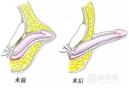阴茎延长术是根据不同男士的生理特点和(或)延长需求,取适当位置切断阴茎上的浅悬韧带和深悬韧带,使埋藏在体内的那段阴茎海绵体分离出来,采用内填外拔的缝合技术,使阴茎体外部分延长3-5厘米。这种手术不仅可使阴茎延伸至接近正常的长度,而且有正常的勃起和感觉功能。极大地提高了男性性生活质量。